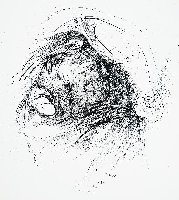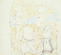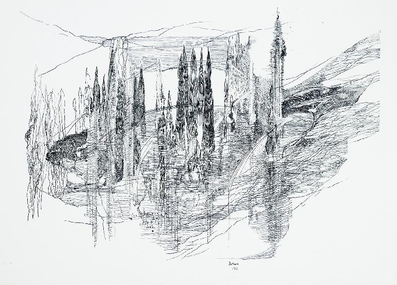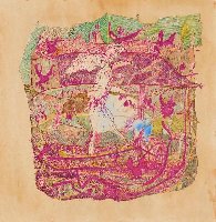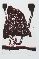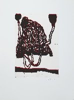 Altenbourg, Gerhard [i.e. Gerhard Ströch] Da sucht einer einen kleinen See (Chinesische Tusche, Feder, Aquarell über Kleinoffsetdruck in Rot nach der Zeichnung "Kopflandschaft" - 1970)