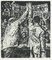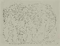 Altenbourg, Gerhard [i.e. Gerhard Ströch] Auch ein Turnstündchen - und die Abseitige (Lithographie, Steinritzung auf grünlichem Hahnemühle-Bütten - 1971)