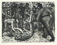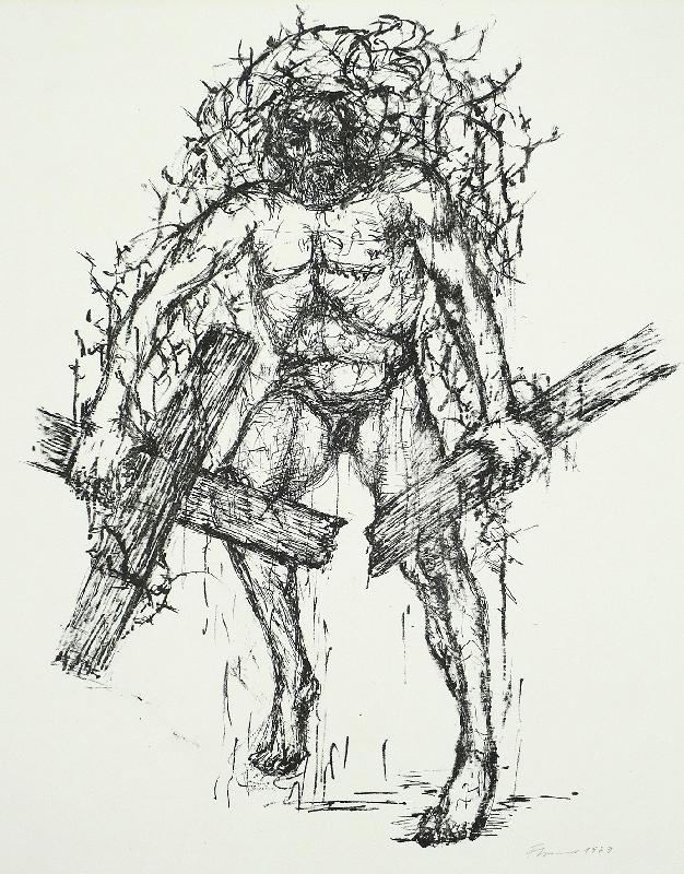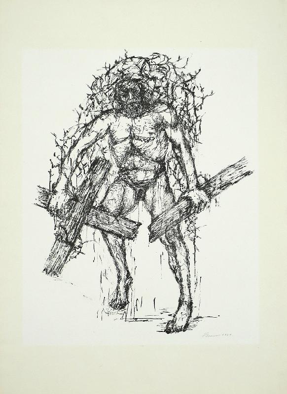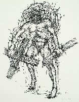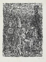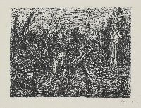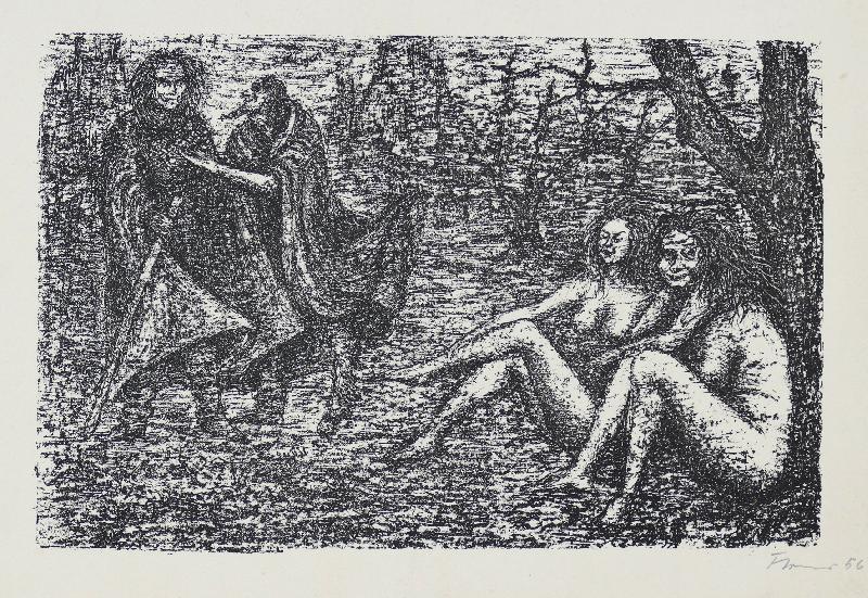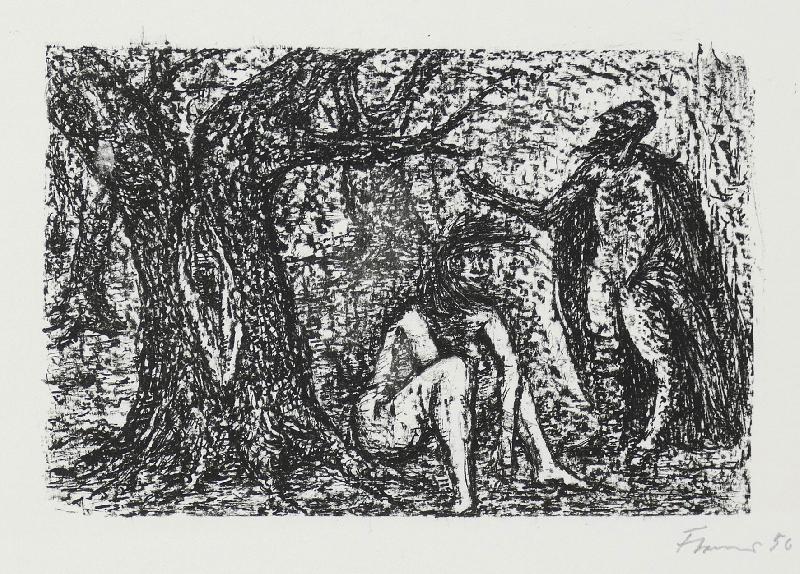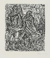 Adam und Eva im Sumpf zu Peter Hacks: Adam und Eva Lithographie, 1974, 178 x 160, sign., dat., num. (3/60), im Stein spiegelverkehrt mon. und dat. Unter Passepartout montiert (nicht lichtrandig). WV Brade/Stula L 97.