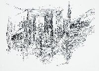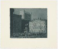 Arena 09 Farbfotographie, montiert oberhalb einer Lithographie auf Hahnemühle-Bütten, 2005, Papierformat: 700 x 540, sign., dat., num. (35/100). Für diese Edition hat Ackermann ein Schnittbild geschaffen, in dem wechselnde Fotografien in unterstellter Objektivität auf das gezeichnete und danach lithografierte Bild einer Baustelle - zum Beispiel am zurzeit heftig von Spekulanten hin- und hergeschobenen Immobilien- und Grundstücksbestand am Spreeufer - treffen, was den Betrachtern ein Oszillieren zwischen Vorstellung und Wirklichkeit ermöglicht. Edition der Zeitschrift "Texte zur Kunst", Berlin 2005.