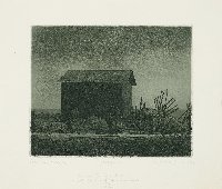 Flocken, Minuten: Aufdämmern der Nacht Farbholzschnitt von drei Druckstöcken in Blau, Grün und Rot, 1970, 375 x 274 sign., dat., num. (57/100), betitelt, Trockenstempel des Künstlers. WV Janda H 150 2. Prachtvoller Farbholzschnitt in hervorragendem Zustand. |