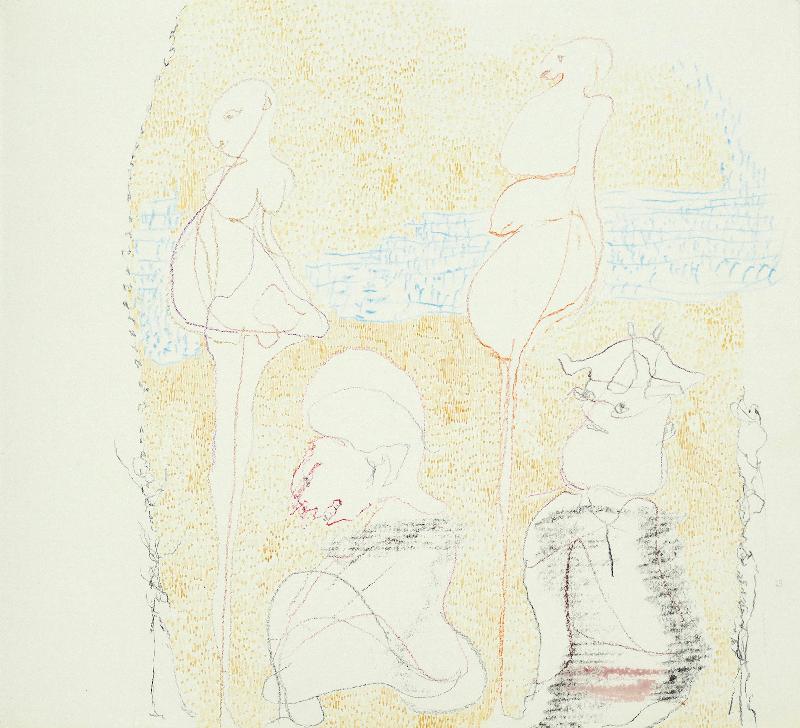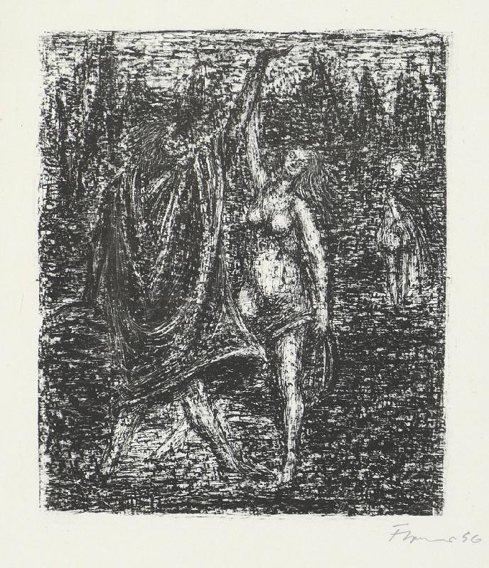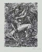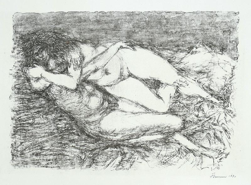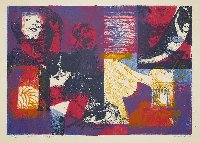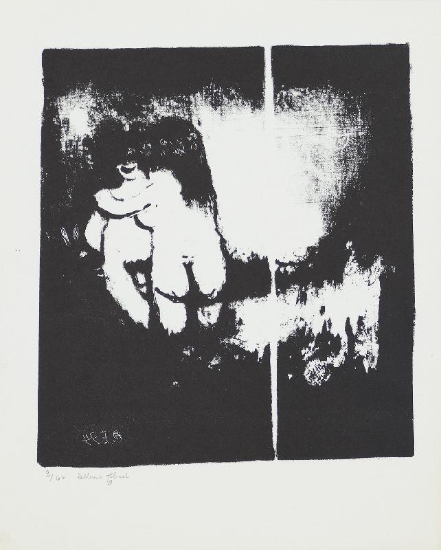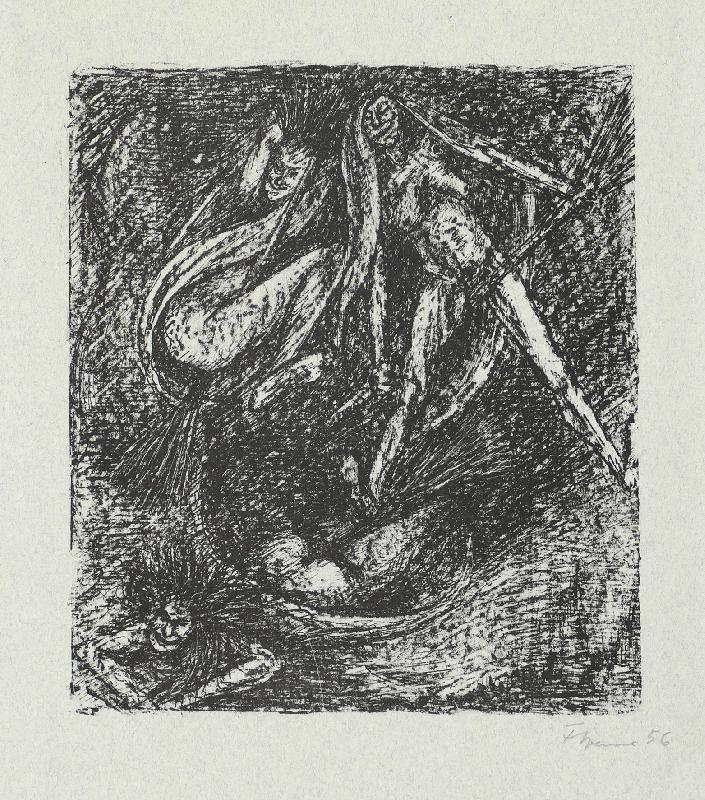 In Erwartung Lithographie, 1968, 180 x 150, num. (7/25), im Stein sign. und dat., verso: Sammlerstempel. WV Brade/Stula L 20. Zauberhaftes Blatt des Hallenser Meisters in tadellosem Zustand.