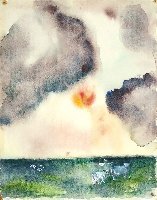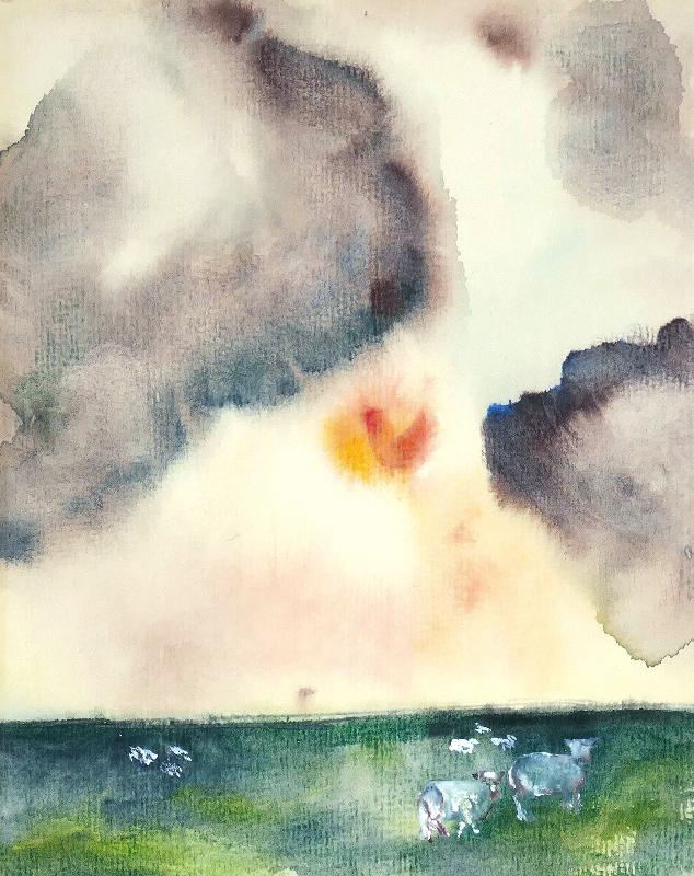 Hallig Hooge III Aquarell, montiert auf Unterlegpapier, 1936, 220 x 180, unter Passepartout montiert, dort verso dat., bez. (Nr. 27 [Ausstellungsnummer?]) und betitelt. Von Heinrich Ehmsen unter Glas gerahmt, auf der Rückpappe Signatur, Adresse und Stempel des Künstlers. Kleine Reißzweckenlöchlein in den Ecken (vom Passepartout verdeckt). Die zeitgenössische Rahmung, besonders das Passepartout, müßte erneuert werden, das Aquarell selbst ist gut erhalten.