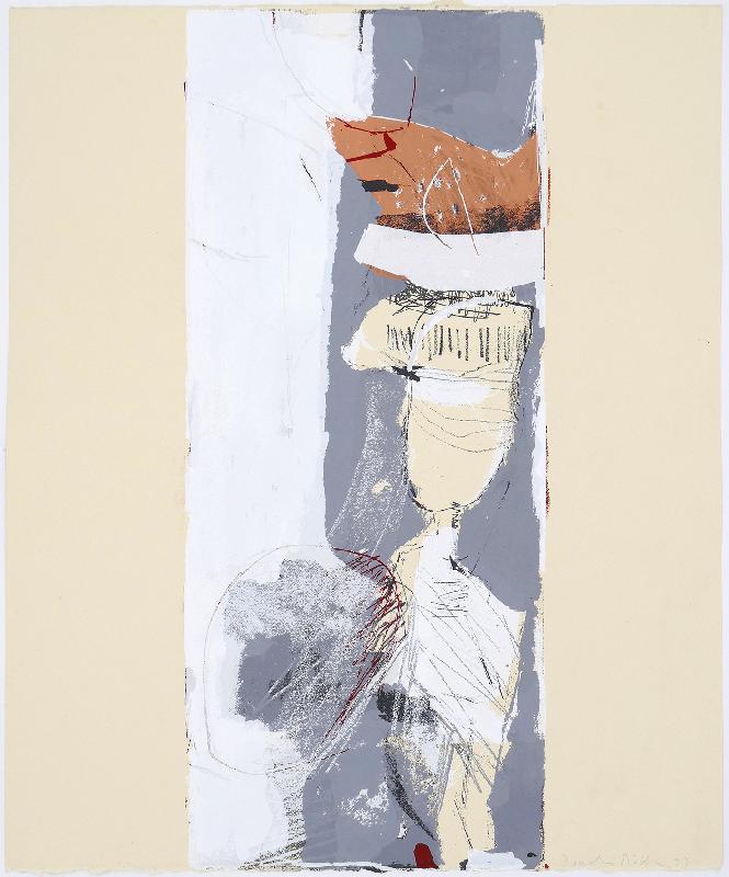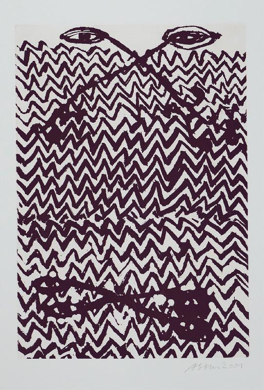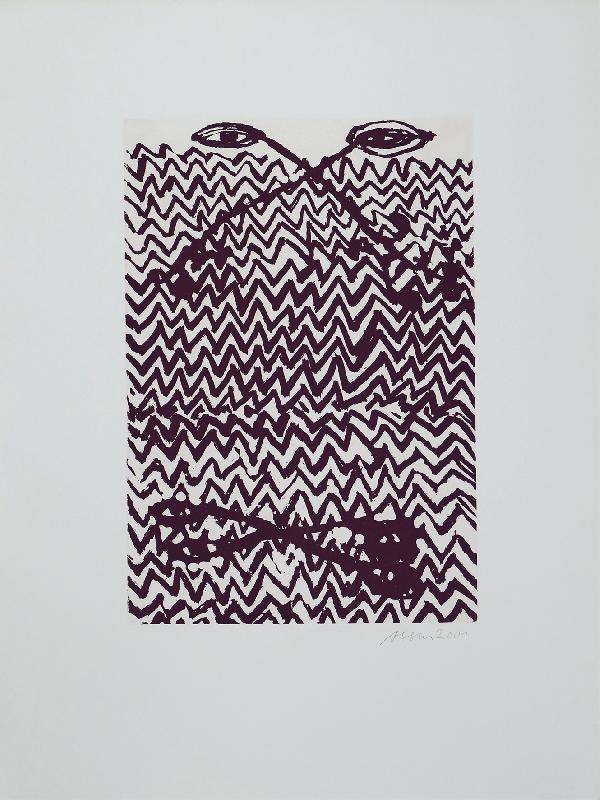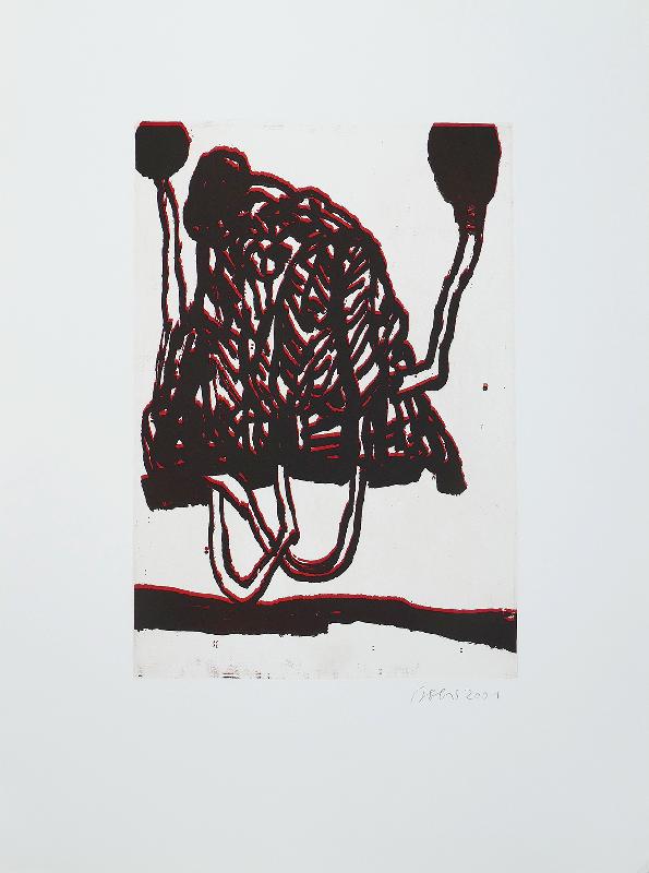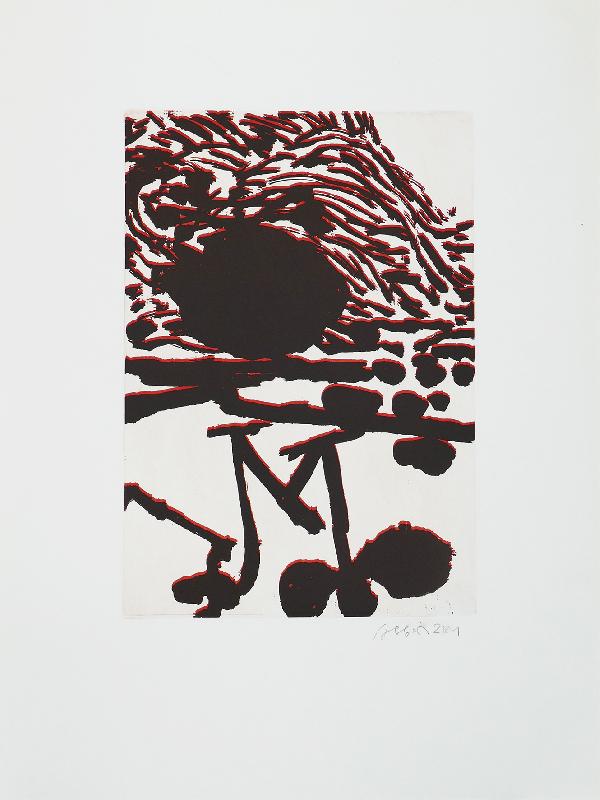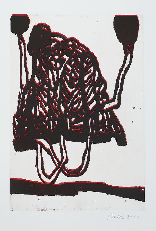 Versuch einer Beziehung (vielleicht an einem untauglichen Objekt?) Holzschnitt auf weißem Papier, montiert auf Fabriano Roma Bütten, 1967, 225 x 120, sign., dat., num. (7/40), auf der Unterlage betitelt, Trockenstempel des Künstlers. WV Janda H 97. Hervorragender Zustand.