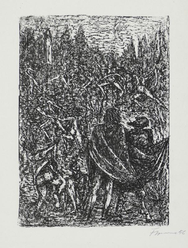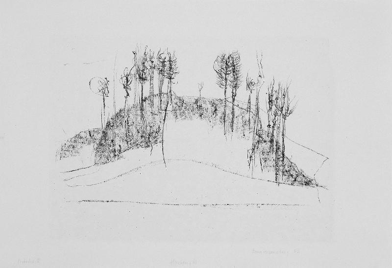 Baumversammlung Lithographie auf festem weißem Karton, 1963, 178 x 304 (Papierformat: 301 x 439), sign., dat. (2x), bez. (Probedruck), betitelt. WV Janda L 89. Auflage nur zehn Ex. Ein unauffälliges braunes Fleckchen innerhalb der Darstellung. Hervorragender Erhaltungszustand dieses seltenen Blattes.