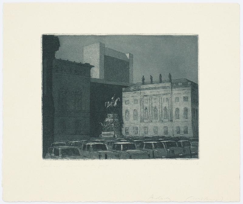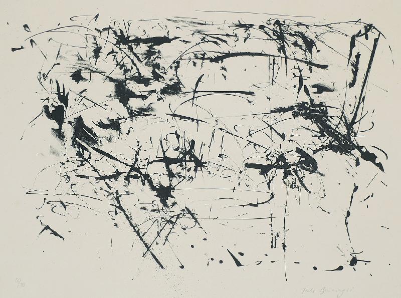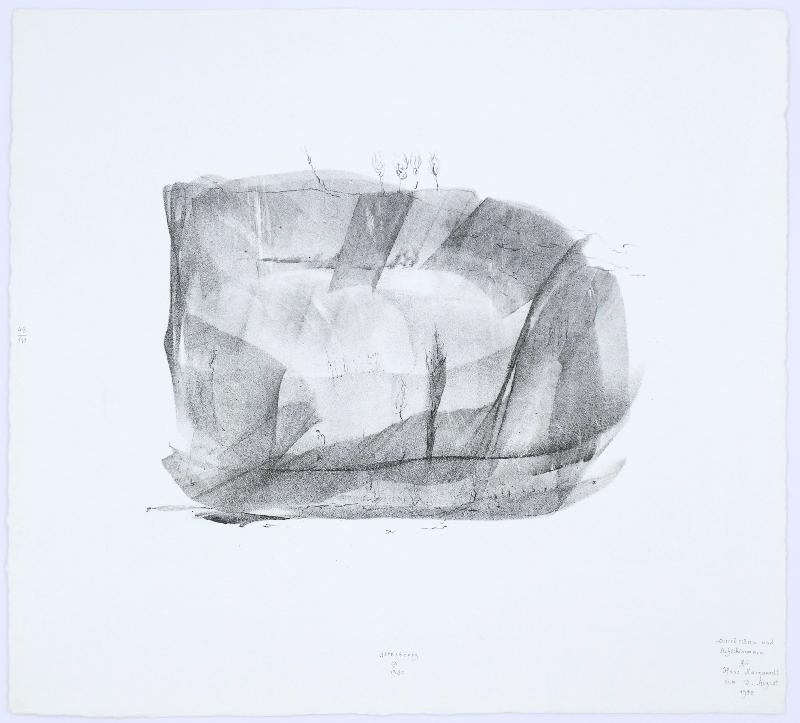 Durchschau und Aufschimmern. Für Hans Marquardt zum 12. August 1980 Lithographie auf Bütten, 1980, 195 x 245 (Papierformat: 351 x 392), sign., mon., dat., num. (43/111), betitelt, Trockenstempel des Künstlers. WV G. Schmidt L 170 / 3. Edition als Gabe für die Gäste zum 60. Geburtstag von Hans Marquardt. Hervorragender Zustand.