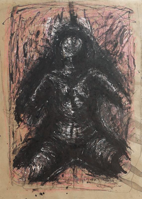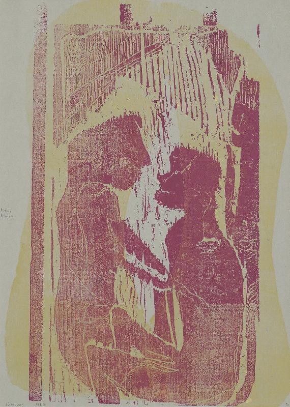 Altenbourg, Gerhard [i.e. Gerhard Ströch] Gesammeltes Schweigen (Farbholzschnitt in Rotbraun und Grau auf AD Hahnemühle-Bütten - 1977)