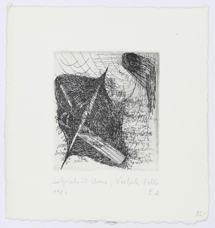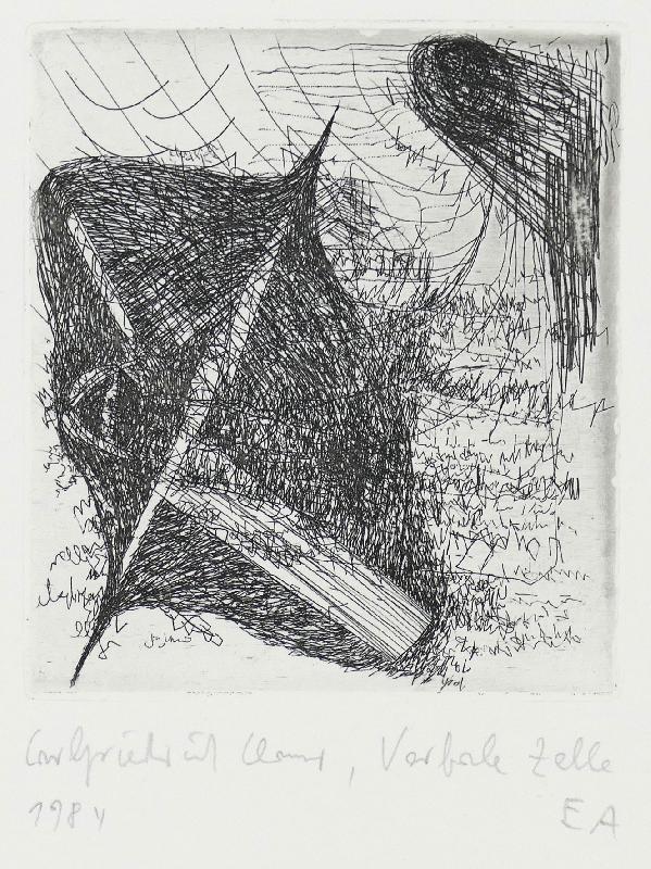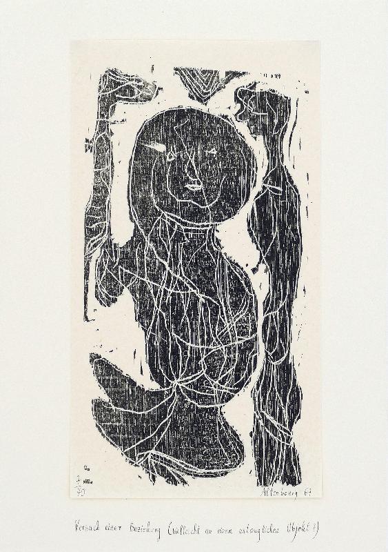 Altenbourg, Gerhard [i.e. Gerhard Ströch] Versuch einer Beziehung (vielleicht an einem untauglichen Objekt?) (Holzschnitt auf weißem Papier, montiert auf Fabriano Roma Bütten - 1967)