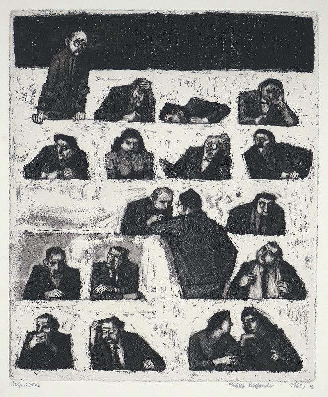 Altenbourg, Gerhard [i.e. Gerhard Ströch] Baumversammlung (Lithographie auf festem weißem Karton - 1963)