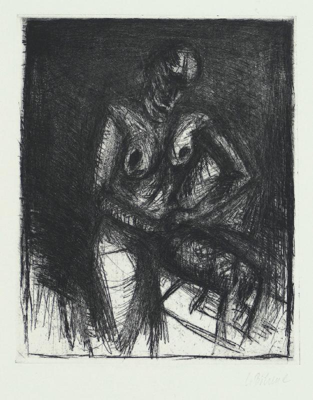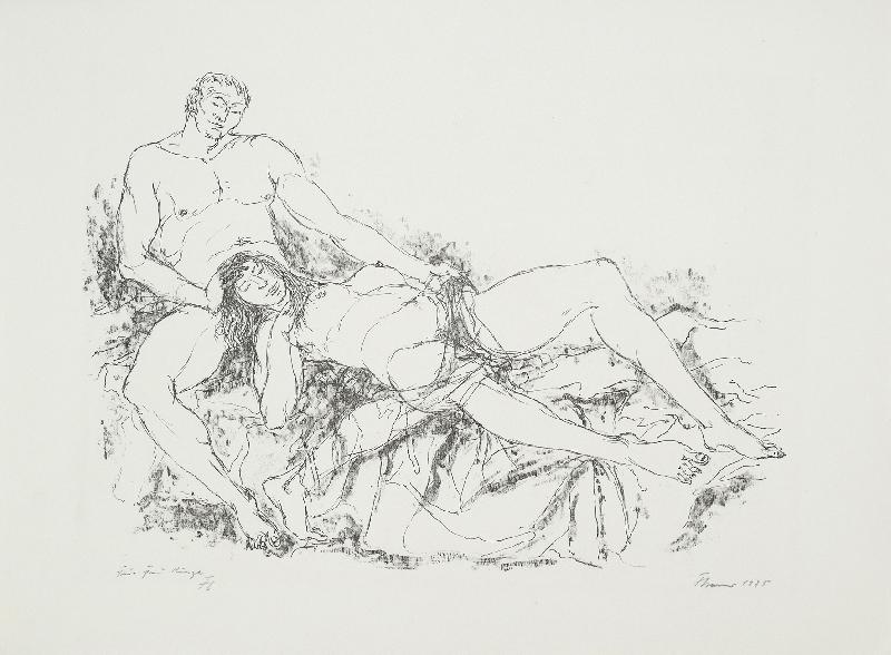 Liebespaar II (Die Begegnung) Lithographie, 1967, 128 x 126, sign., num. (No. 8/30), o.l. bez. (17), im Stein sign. und dat. Unter Passepartout montiert (nicht lichtrandig). WV Brade/Stula L 12.