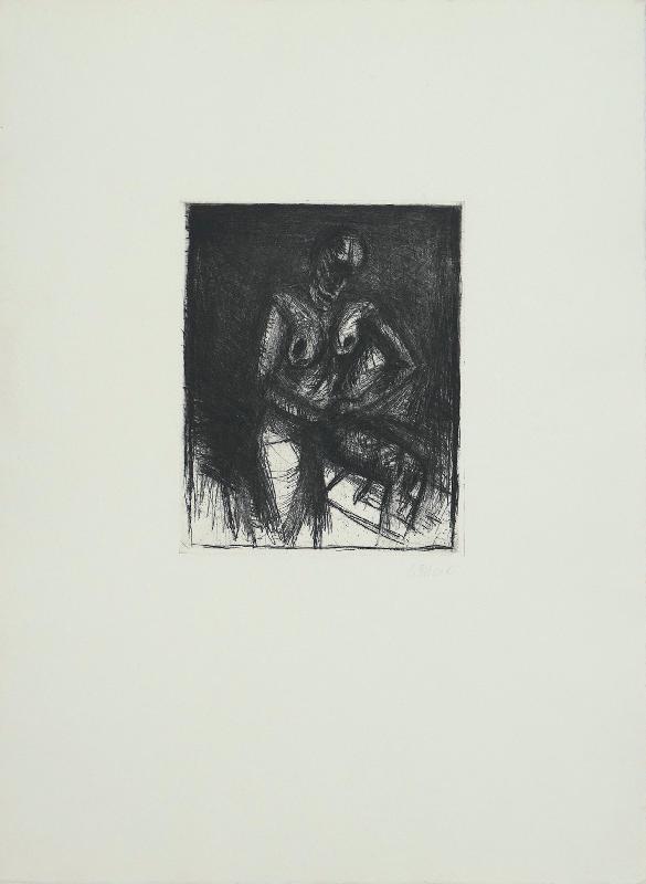Einblick in Sitzende Radierung auf Hahnemühle-Bütten, 1979, 147 x 197, sign., dat., bez. (Probedruck), in der Platte spiegelverkehrt dat. (V 79). WV SKH 155, Abb. S. 103. Sehr guter Zustand.