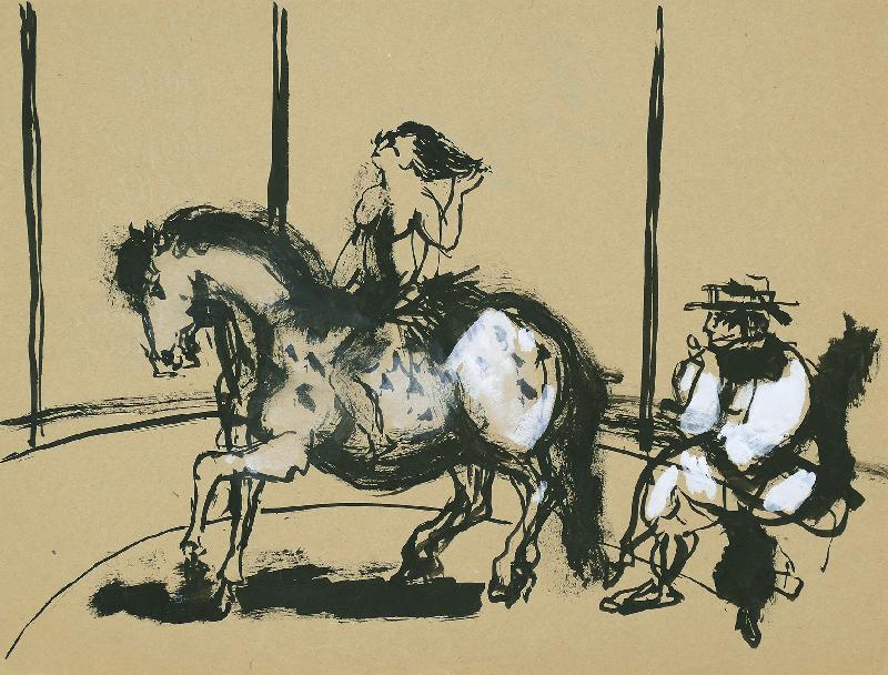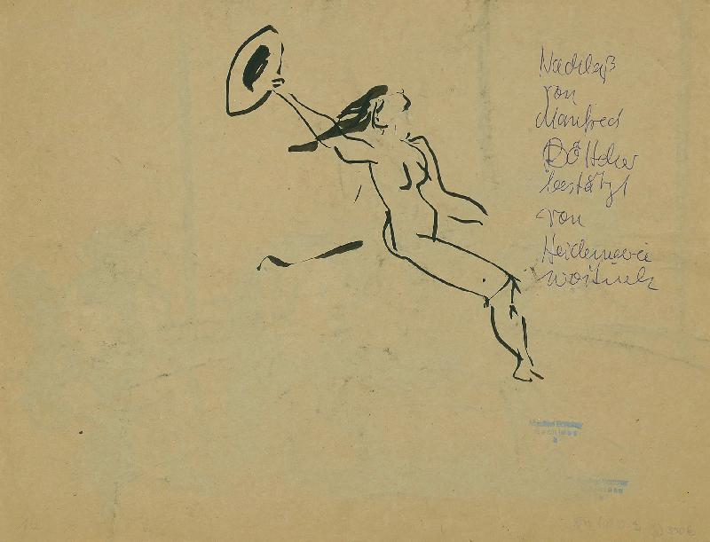 Un chant d amour Farblithographie in Ocker und Schwarz auf kräftigem Velin, montiert auf Karton, 1958, 307 x 237. Orig.-Lithographie aus der Zeitschrift: XXe Siecle, Nr. 11, Paris 1958. WV Spies/Leppien 71. An den Rändern minimal beschnitten, sonst ausgezeichneter Druck von tadelloser Erhaltung.