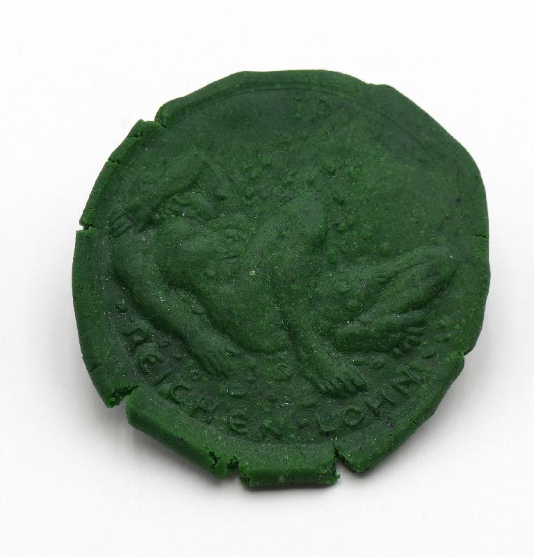Reichen Lohn 1975 (Liegende Frau im Geldregen, Danae), Medaille, grünes Plastilin, d: 65, WV 74.20 |