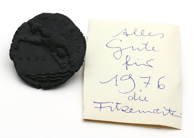 Hinein 1976 (Ins Wasser springender Mann), Medaille, schwarzes Plastilin, d: 60, WV 75.13 |