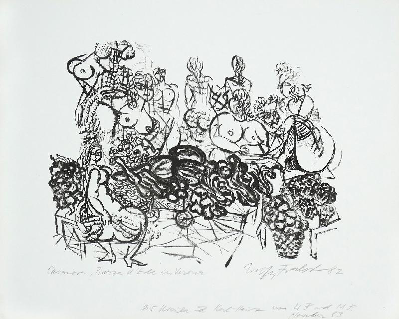 Casanova, Piazza dErbe in Verona, Lithographie, 1982, 225 x 290, sign., dat., betitelt, mit handschriftlicher Widmung des Künstlers |