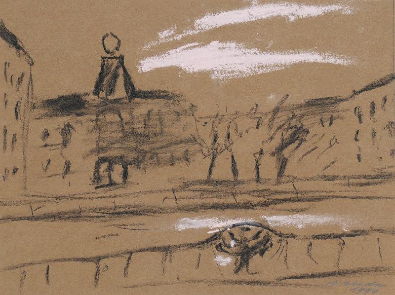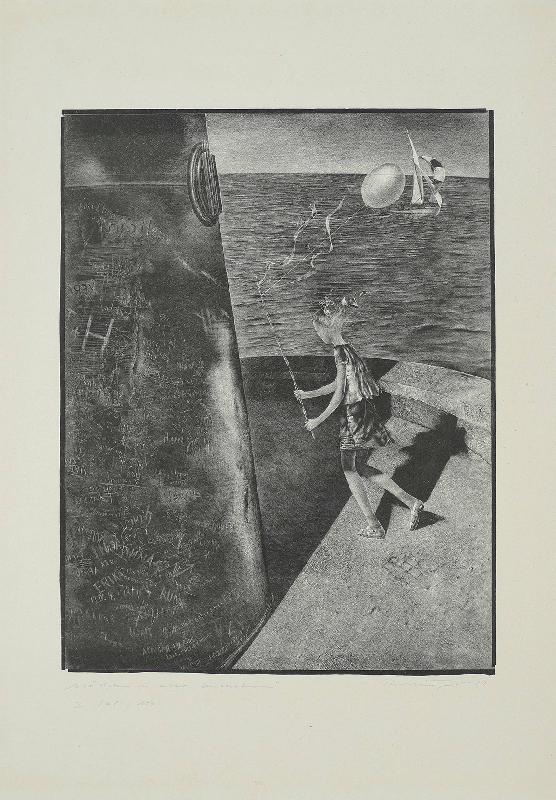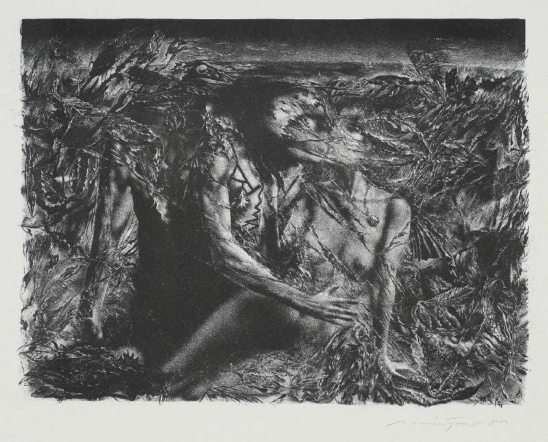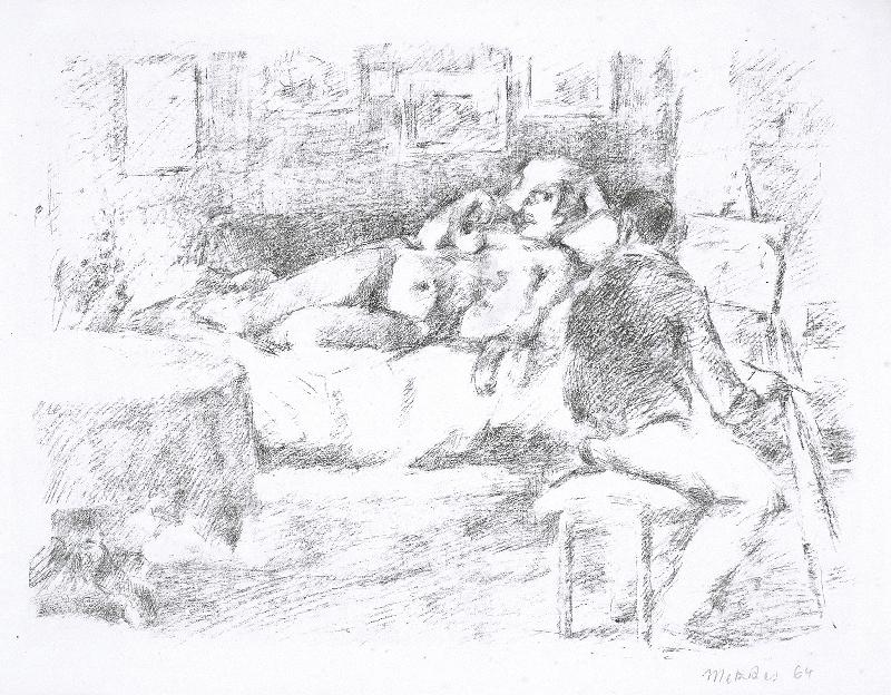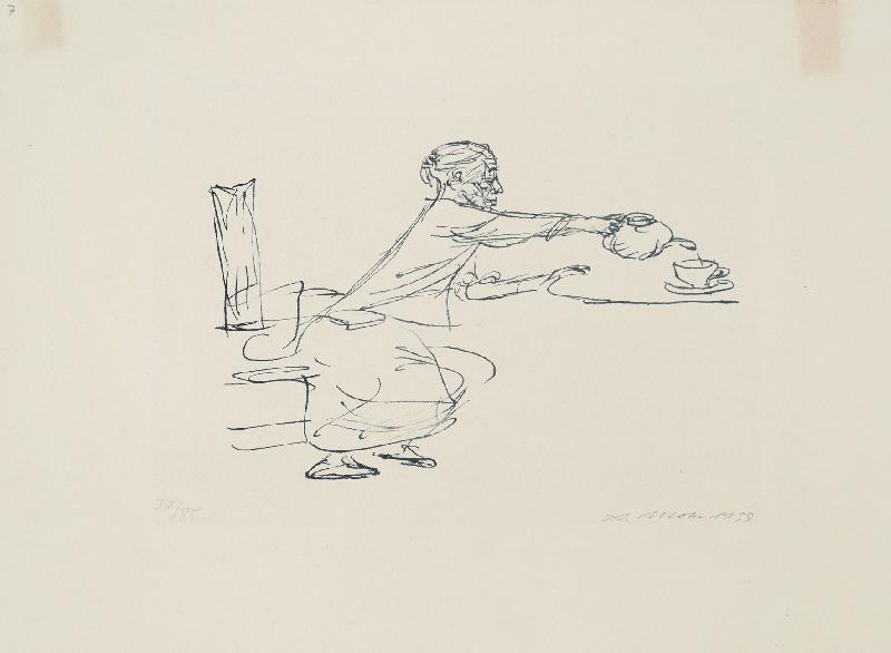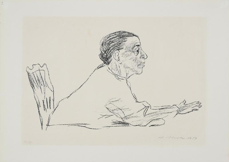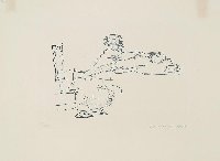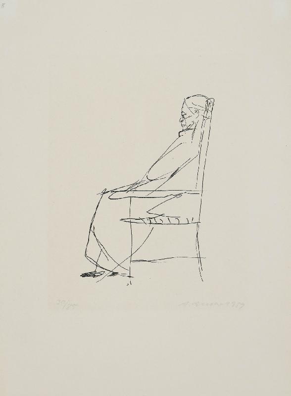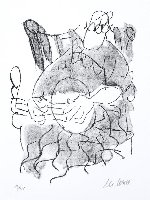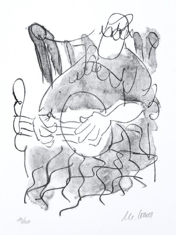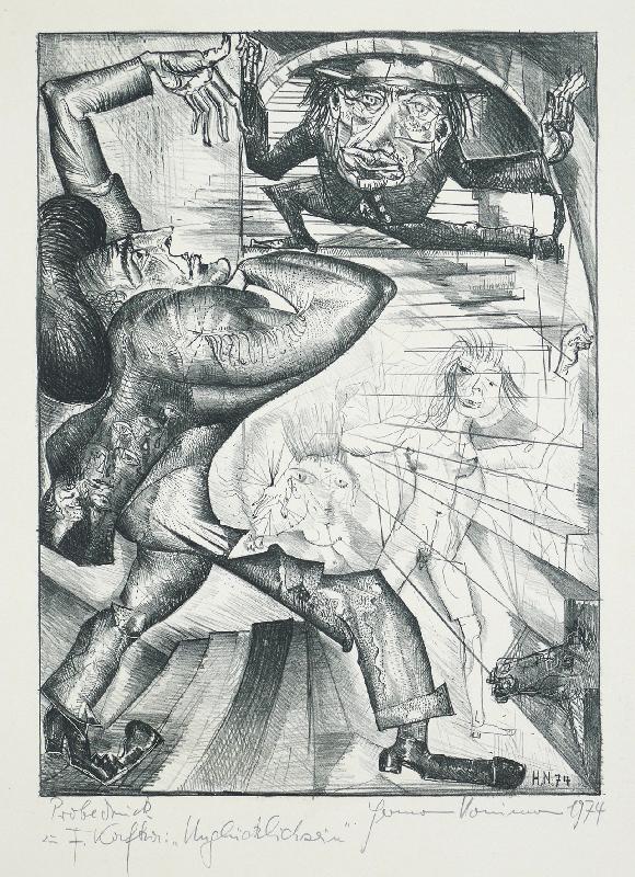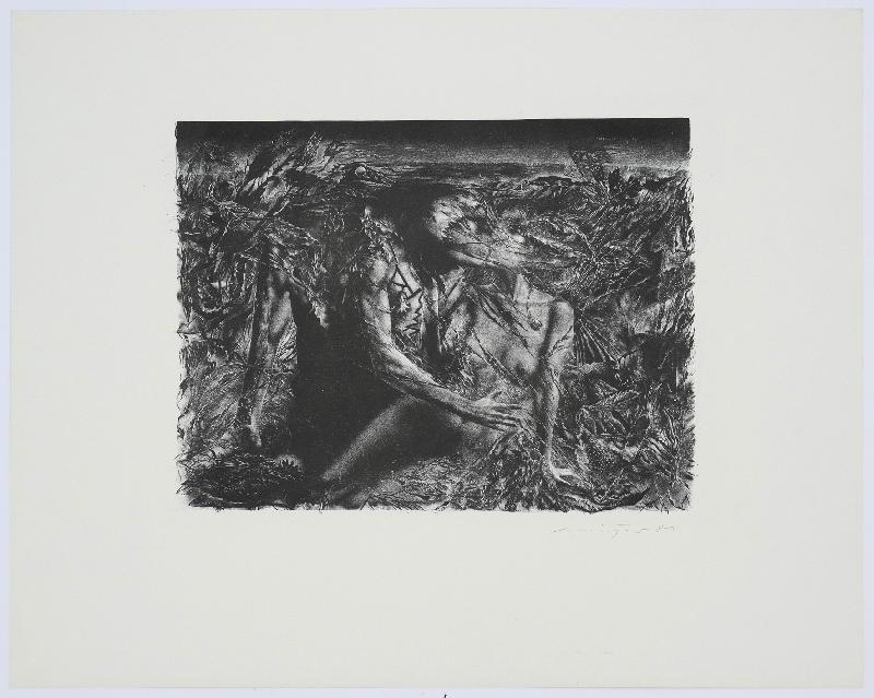 Unglücklichsein, Lithographie in Graugrün, 1974, 415 x 303, sign., dat., bez. (Probedruck), betitelt, im Stein mon. und dat. |