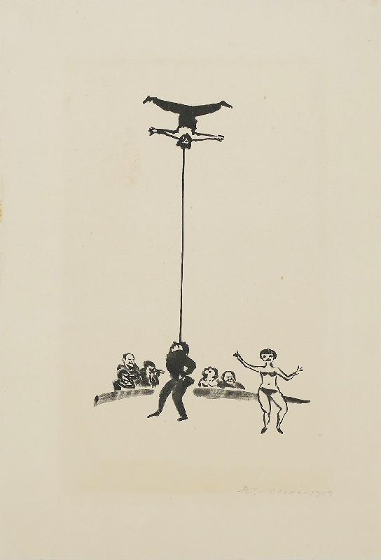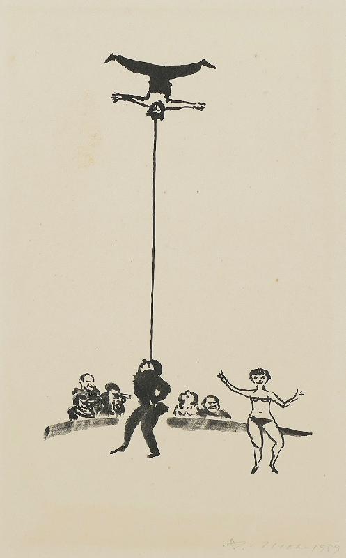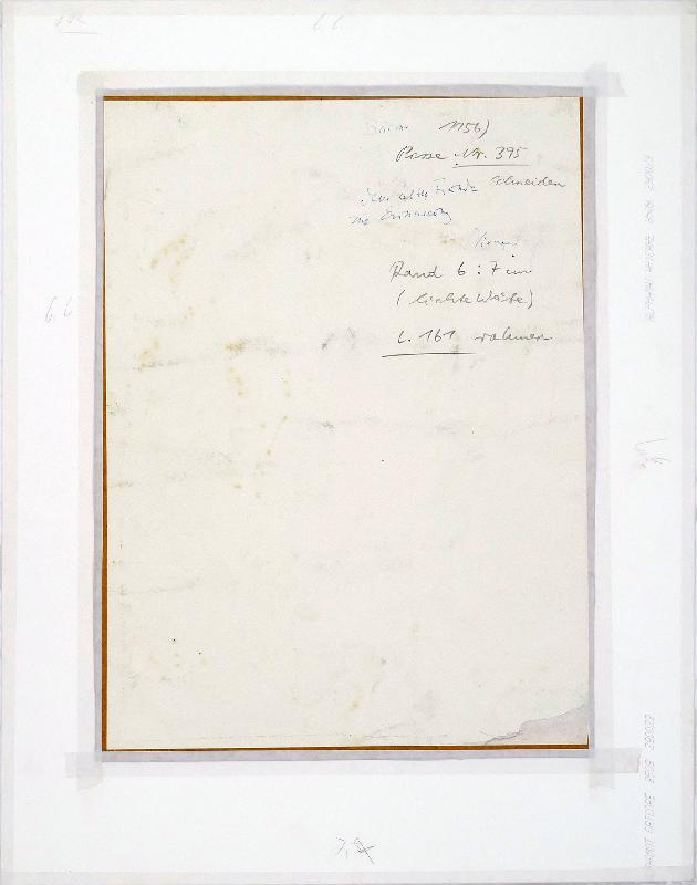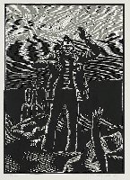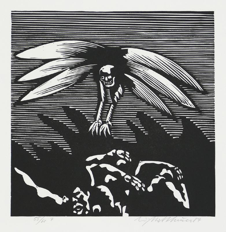 zu J.R. Becher "Größe und Elend", Holzschnitt, WV Koch/Grimm 347, Klebespuren einer früheren Montierung schlagen im Papierrand unten durch |