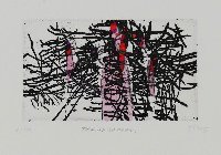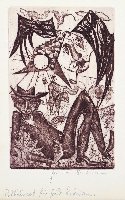 zu J.R. Becher "Windflüchter", Farbradierung in Rotbraun und Schwarz |