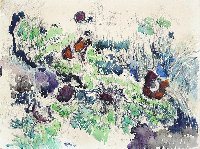 Niemeyer-Holstein, Otto (Blumenwiese) (Zeichnung, Kohle, Aquarell auf gehämmertem Papier - 1965)