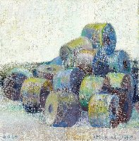 Was vom Felde übrig blieb Ölfarben auf Leinwand, 2023/24, 390 x 390, sign., dat. (2024), verso: sign., dat. (2023), betitelt.