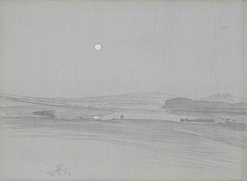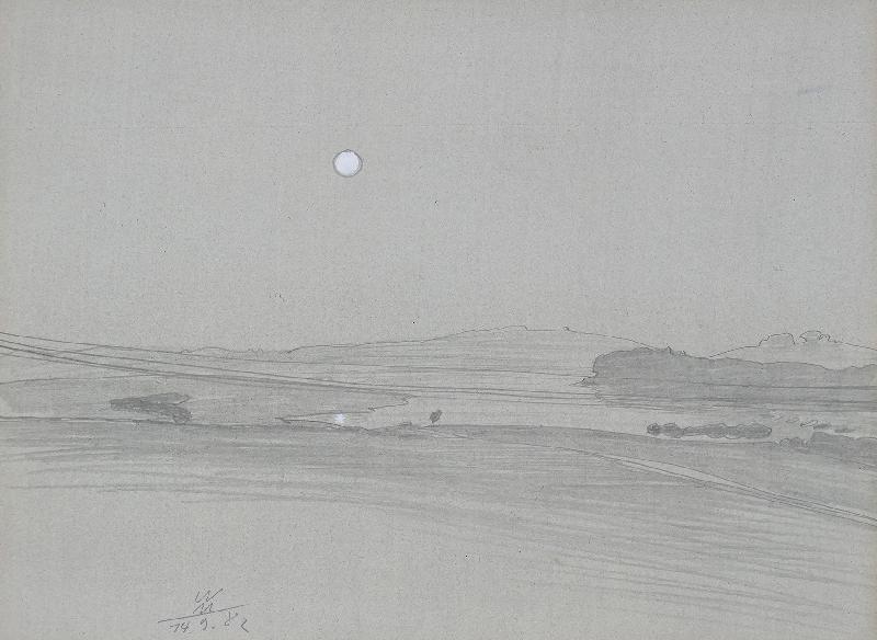 (See im Mondschein) Zeichnung, Graphit, Deckweiß auf grundiertem Karton, 1982, 242 x 329, sign., dat. (14.9.82), verso: leichte Klebespuren einer früheren Montierung. Unter Passepartout montiert, gerahmt. Minimale Randverfärbung unter dem Passepartout, sonst tadellos.