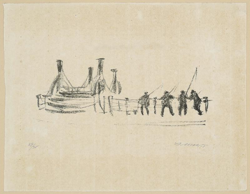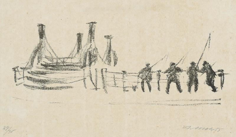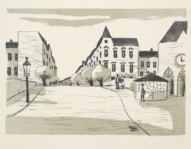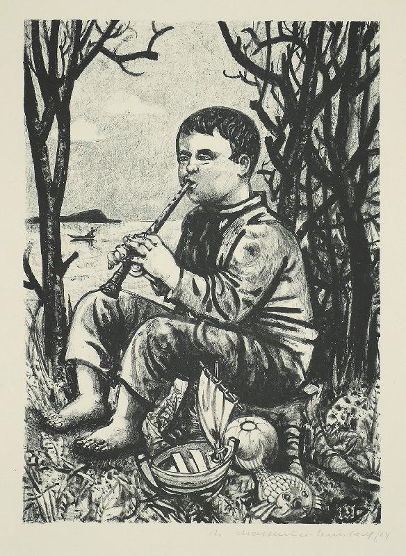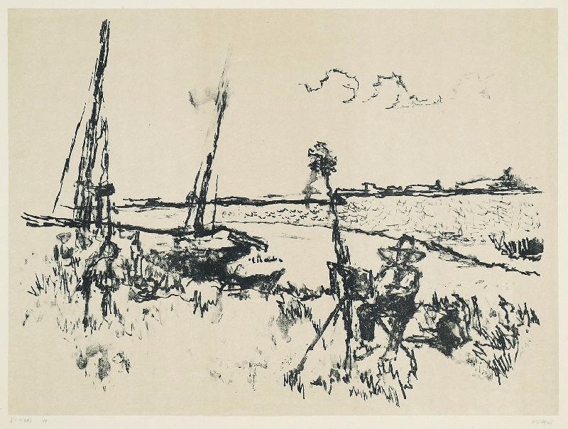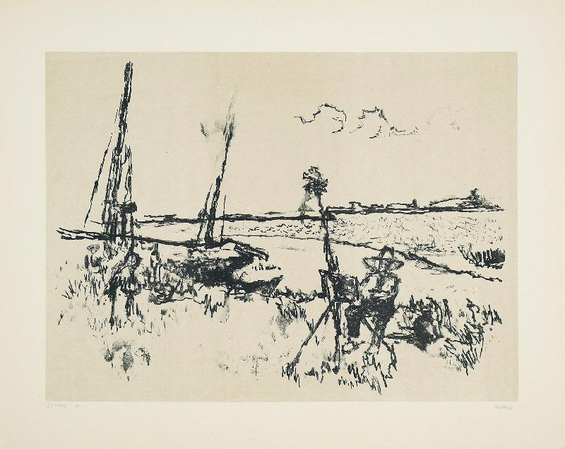 Maler in Lüttenort Lithographie auf farbigem Fond, 1963/65, 308 x 415, mon., dat. (65), num. (II (1-60) 19). WV Schmidt/Sohler/Lau 34. Sehr gut erhalten.