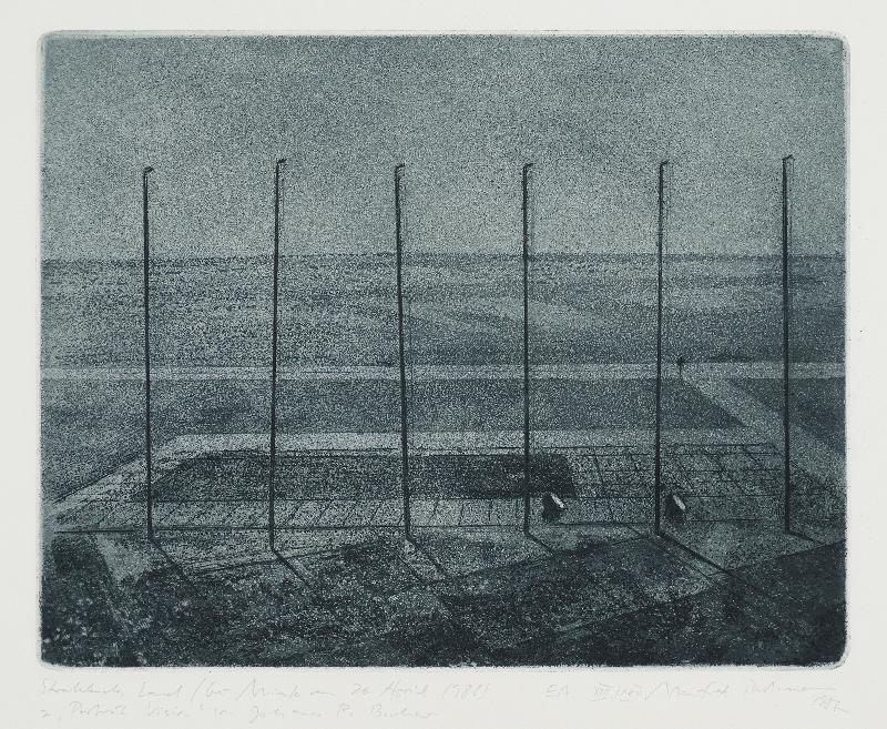 Strahlendes Land - bei Minsk am 26. April 1986, Radierung, Aquatinta in Graublau |