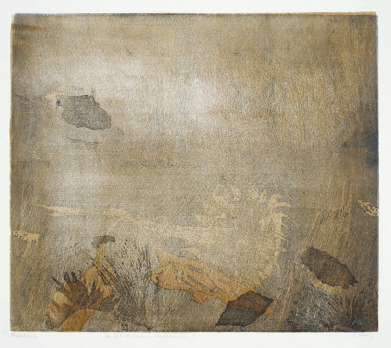 Wolkenschweben, Farbalgraphie in zwei Brauntönen |