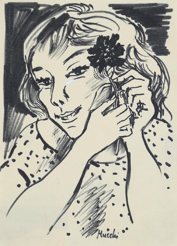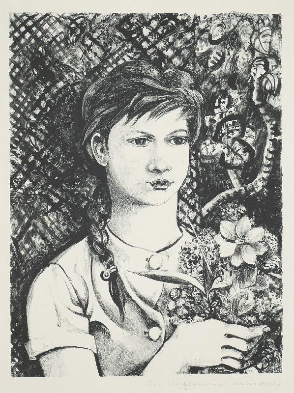 Porträt-Vision, Farblithographie in Braun und Schwarz, WV Scharnhorst 610, unsigniert |