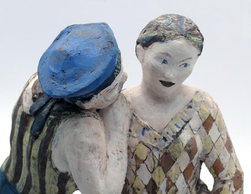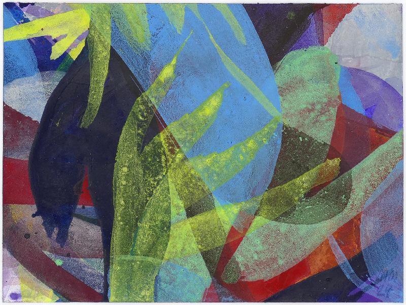 Porträt-Vision, Farblithographie in Gelb, Rot und Blau |