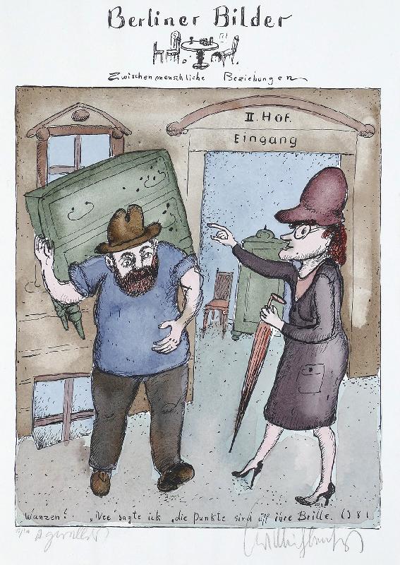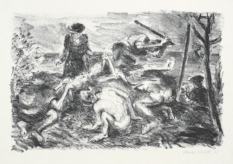Die Abweisung, Lithographie in Violett, 1974, 404 x 305, sign., dat., bez. (Künstlerexemplar), betitelt, im Stein mon. und dat. |