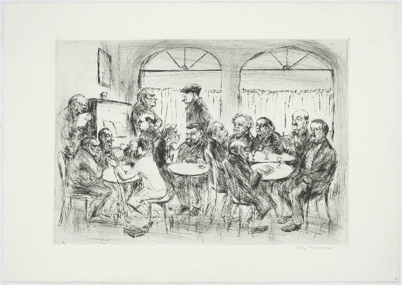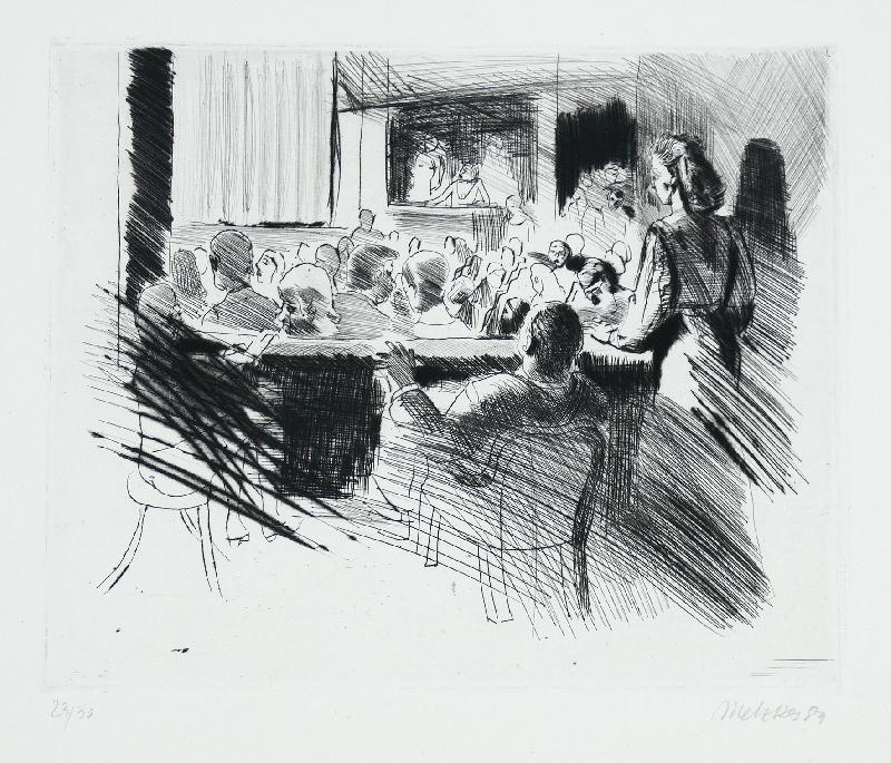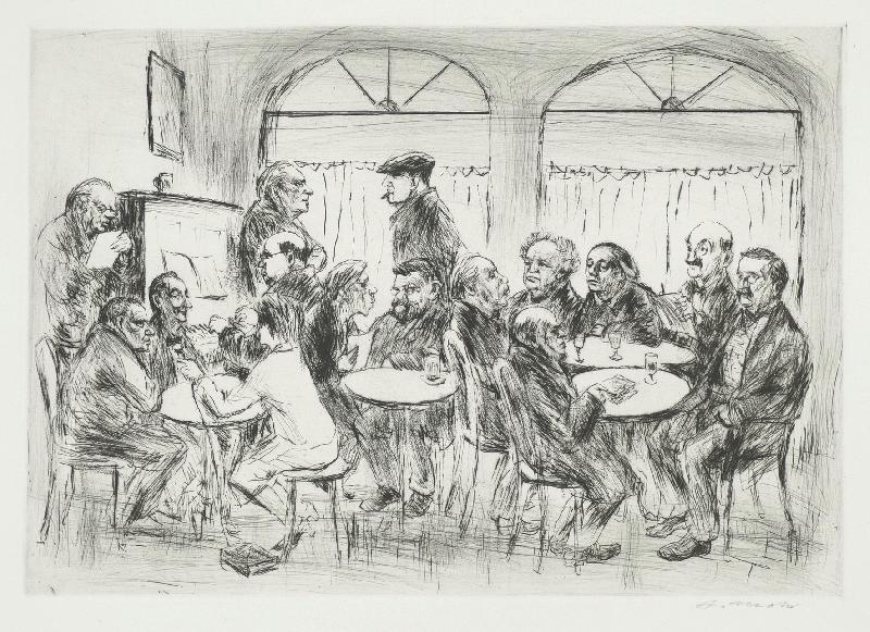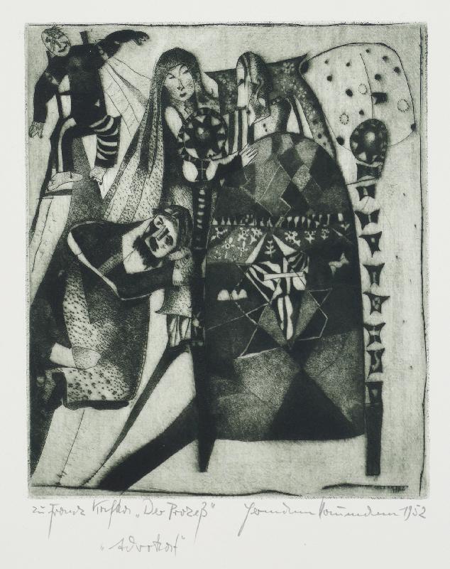 Advokat zu Franz Kafka: Der Prozeß Radierung in Dunkelgrün auf Bütten, 1952, 290 x 246, sign., dat., betitelt.