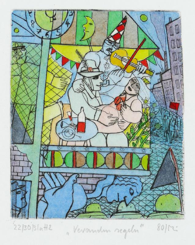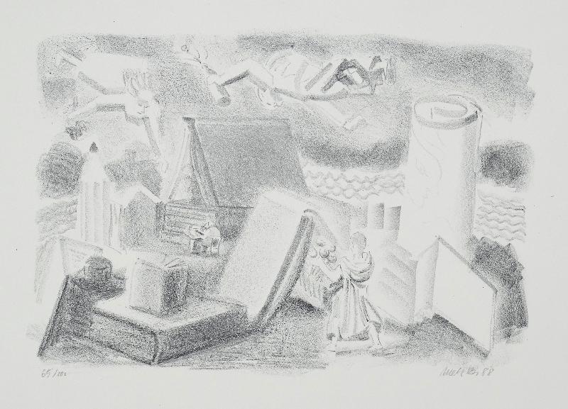 (Große Komposition) Lithographie, 760 x 600, sign., num. (14/30). Sehr guter Zustand.