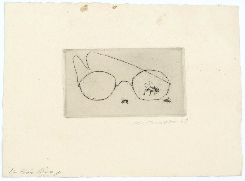 Konvolut von zwei Radierungen (Liegender Mann) und (Traumszene) Punzenstiche in Rotbraun, jeweils 235 x 150, blattweise sign., ein Blatt bez. (Probedruck) und mit handschriftlicher Widmung des Künstlers.