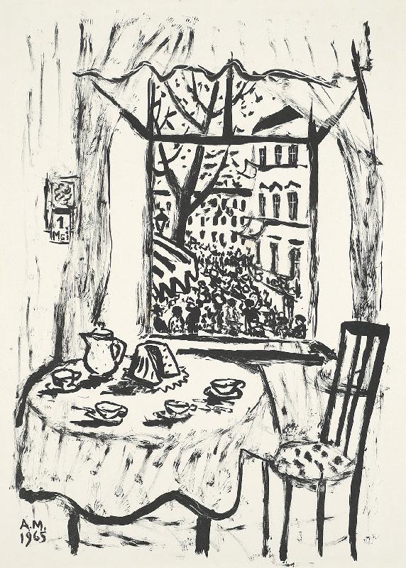Mattheuer, Wolfgang Deutscher Mai - 1945 (Holzschnitt in Grau und Schwarz von zwei Stöcken - 1974)
