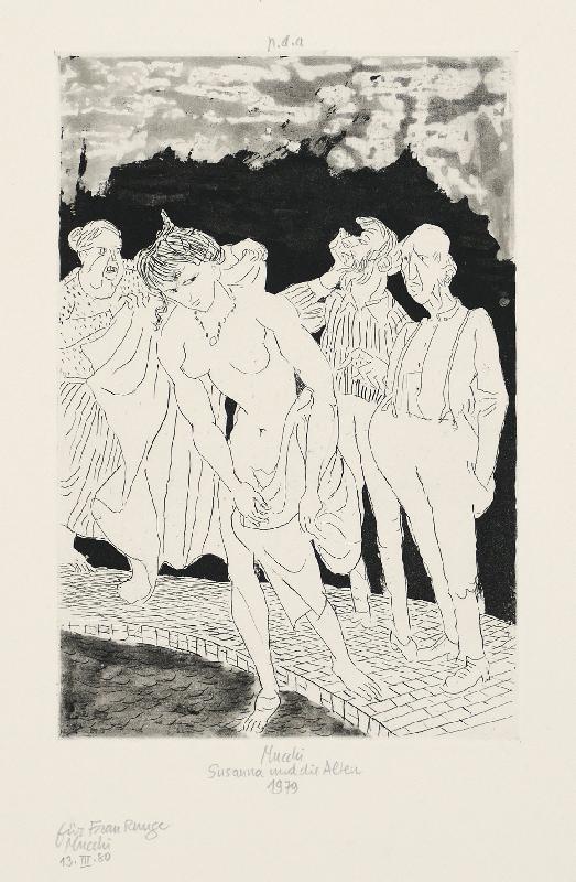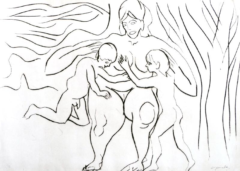 Dani und Kinder Kaltnadel, 1984, 645 x 937, sign., num. (1/10). Großformatige, seltene Graphik in sehr gutem Zustand.