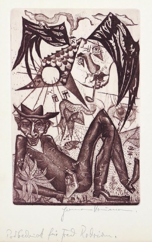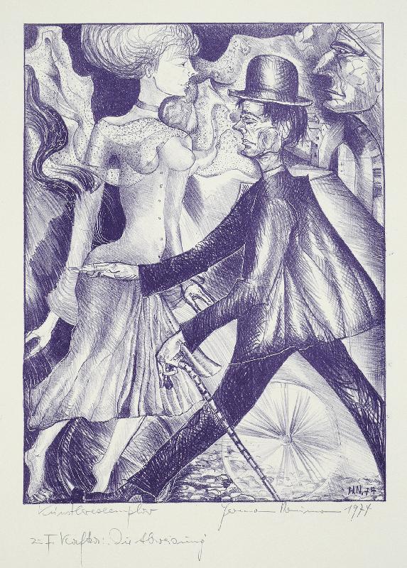Naumann, Hermann Advokat zu Franz Kafka: Der Prozeß (Radierung in Dunkelgrün auf Bütten - 1952)