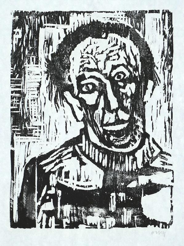Niemeyer-Holstein, Otto Der Zweifler (Holzschnitt auf Japan, montiert auf schwarzem Karton - 1957)