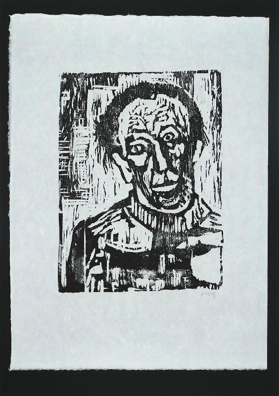 Der Zweifler Holzschnitt auf Japan, montiert auf schwarzem Karton, 1957, 385 x 293, mon. Unter Glas gerahmt. WV Schmidt/Sohler/Lau 25. Hinweis: Versand des Blattes ist nur OHNE Rahmen möglich. Hervorragender Zustand.