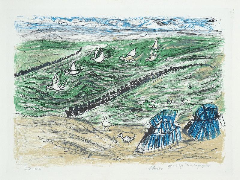 Möwen Farboffsetlithographie, 300 x 420, sign., bez. (Technik), betitelt. In sehr gutem Zustand.