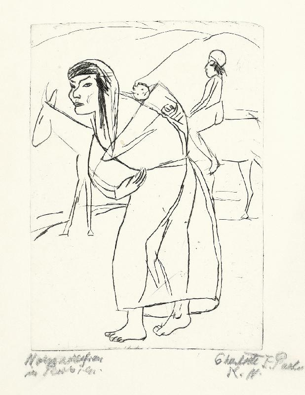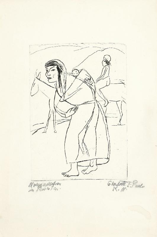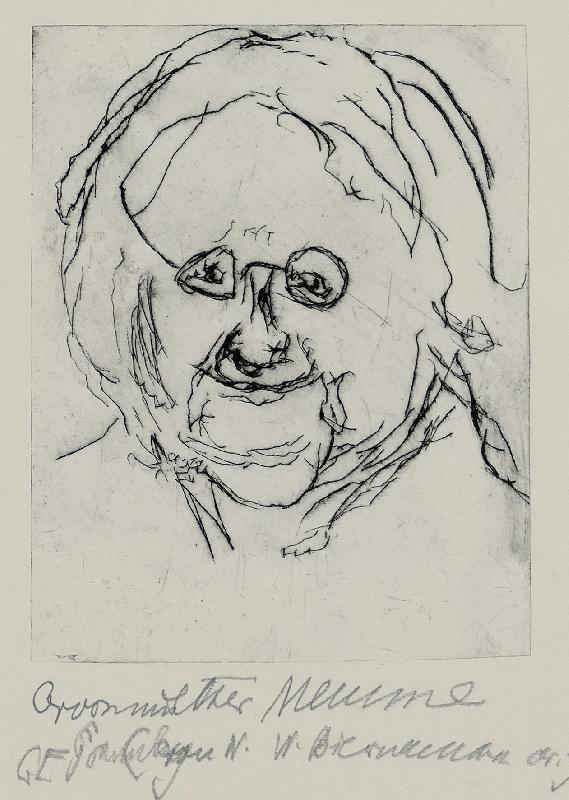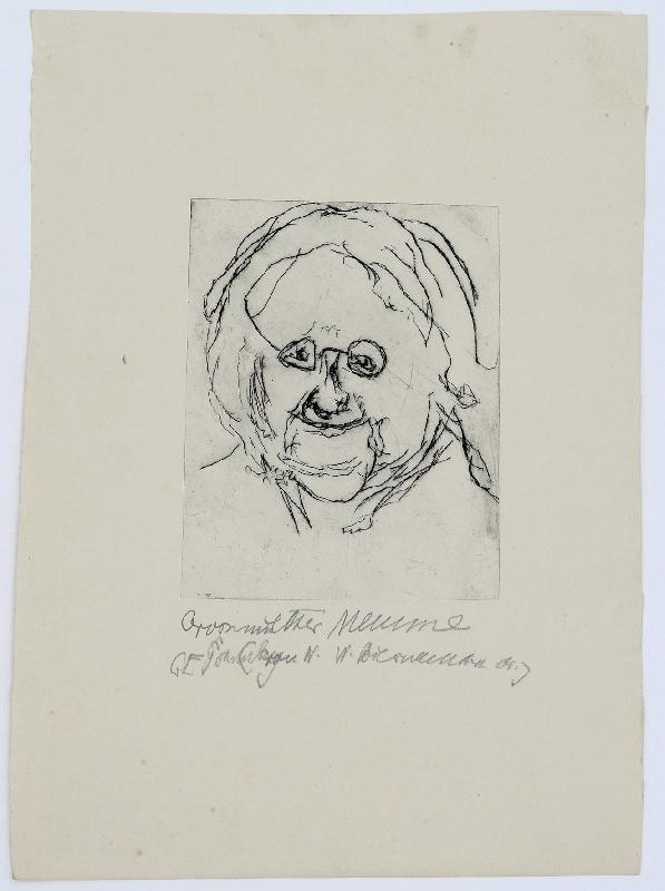 Nomadenfrau in Persien Kaltnadel, 1960, 215 x 151, sign., bez. (K.N. [Kaltnadel]), betitelt. WV Kühnel 100 (hier: Wandernde Nomadenfrau), nur wenige Exemplare. Blaßbrauner Fleck weit unterhalb der Darstellung. Beigabe: Großmutter Meume, Kaltnadel, 1969/72, 154 x 120, sign., betitelt, WV Kühnel 300, wenige Drucke. Etwas knickspurig. Dargestellt ist die Großmutter von Wolf Biermann.